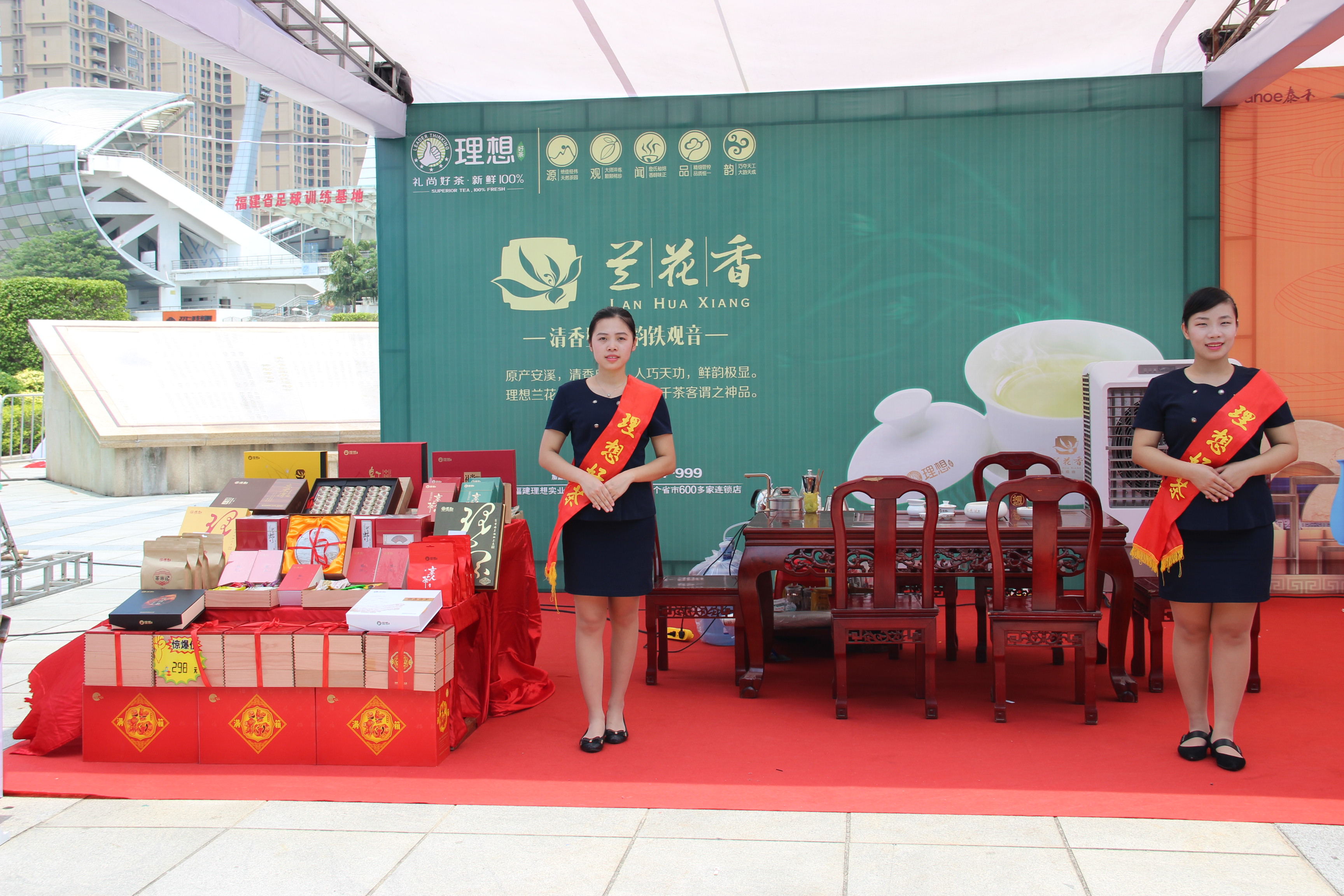 理想好茶受邀参与本次汽车文化节,为现场的观众带来了泉州特产铁观音:明星产品兰花香、连续畅销多年经典V系列、浓香型铁观音代表作忘不得等,由理想好茶制茶大师监制而成,均来自理想好茶6000余亩生态茶园,从茶园到茶杯,让消费者饮到放心好茶。
