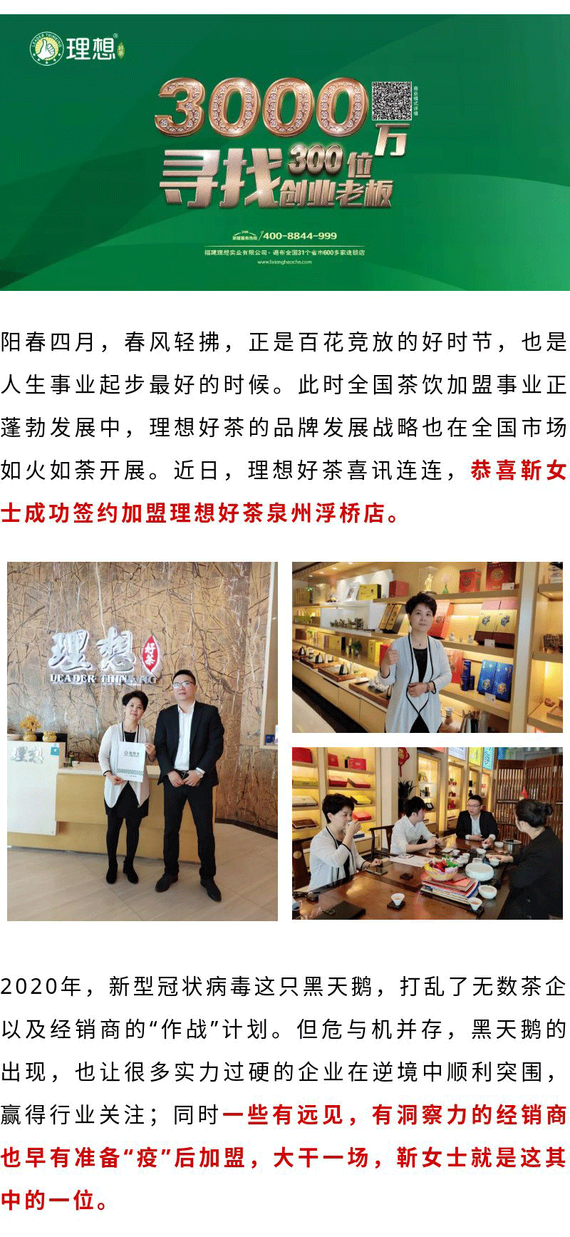 “疫”后喜报│恭喜靳女士签约加盟理想好茶泉州浮桥店