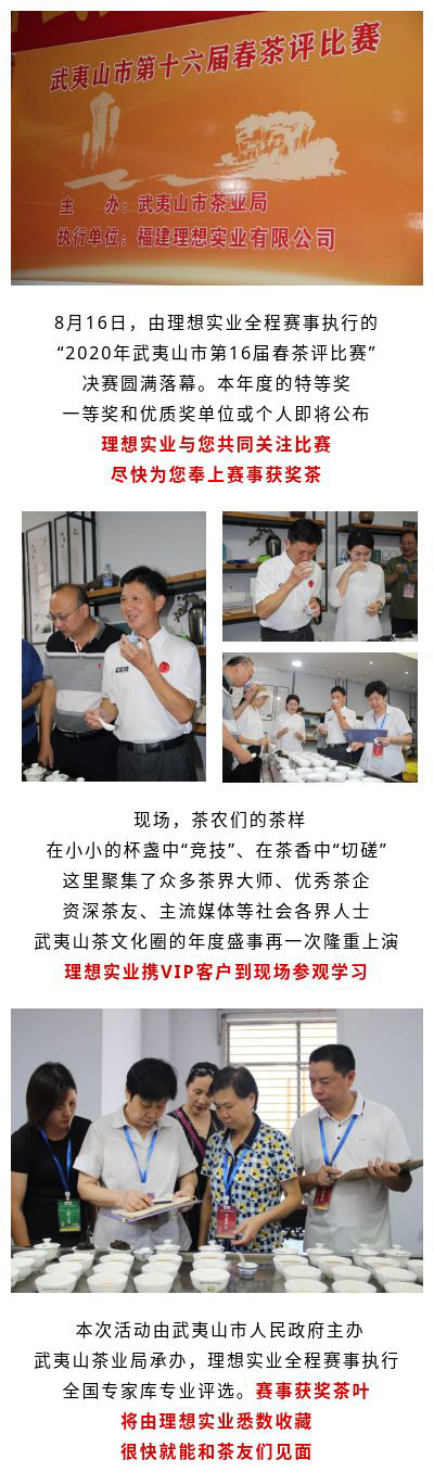 热烈祝贺理想实业荣膺2020年武夷山市第16届春茶评比赛执行单位