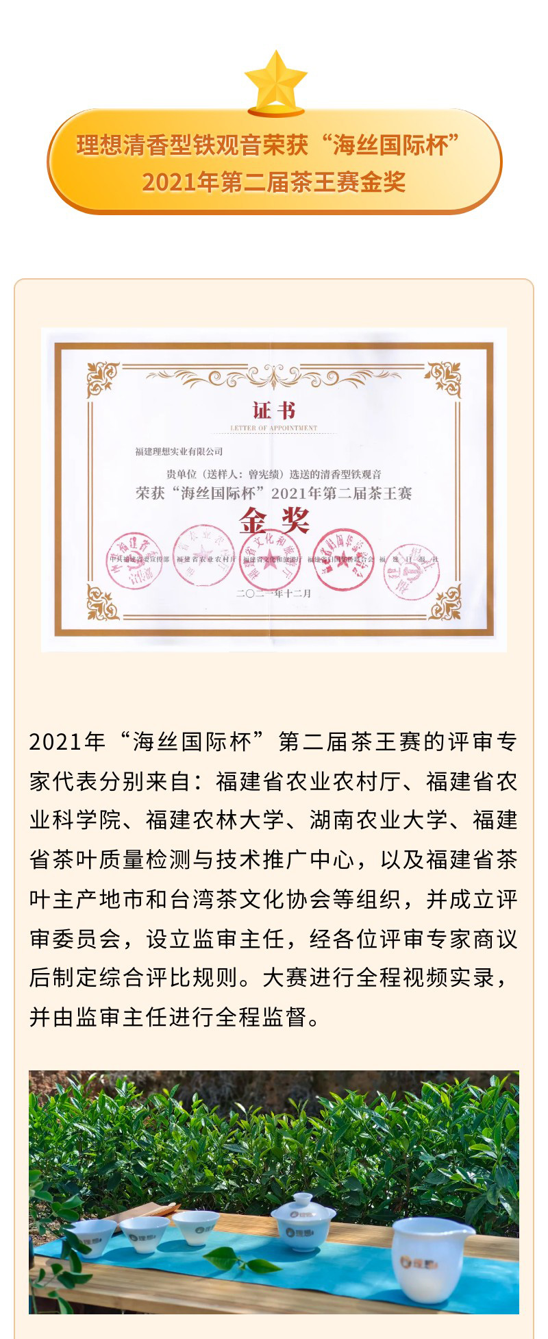 理想清香型铁观音荣获“海丝国际杯” 第二届茶王赛金奖