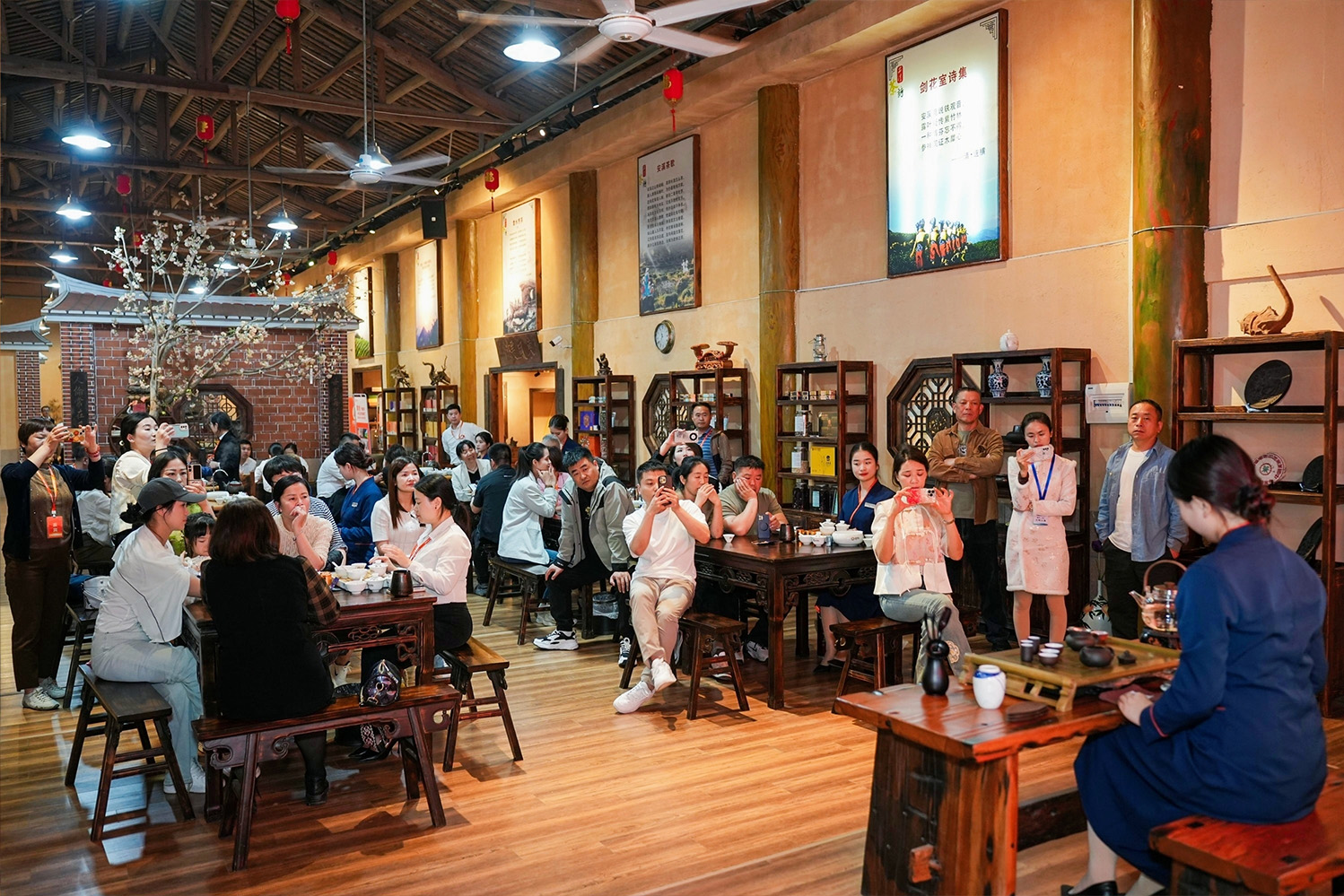 在竞争激烈的市场中,产品的实力是赢得消费者信任和市场竞争力的关键。会上,理想茶业培训总监林茂林热情地介绍了公司的产品。林总指出,理想茶业的产品实力主要体现在多元化和高品质上。理想茶业致力于从茶园到茶杯的全程管控,确保每一杯茶都是优质的。他特别介绍了公司的明星产品——官方斗茶赛赛事获奖茶、兰花香、单丛村长、岁月之约等,这些产品凭借其独特的口感和品质备受消费者的追捧。未来,理想茶业将坚持以消费者需求为导向,不断提升产品的竞争力,在激烈的市场竞争中脱颖而出。